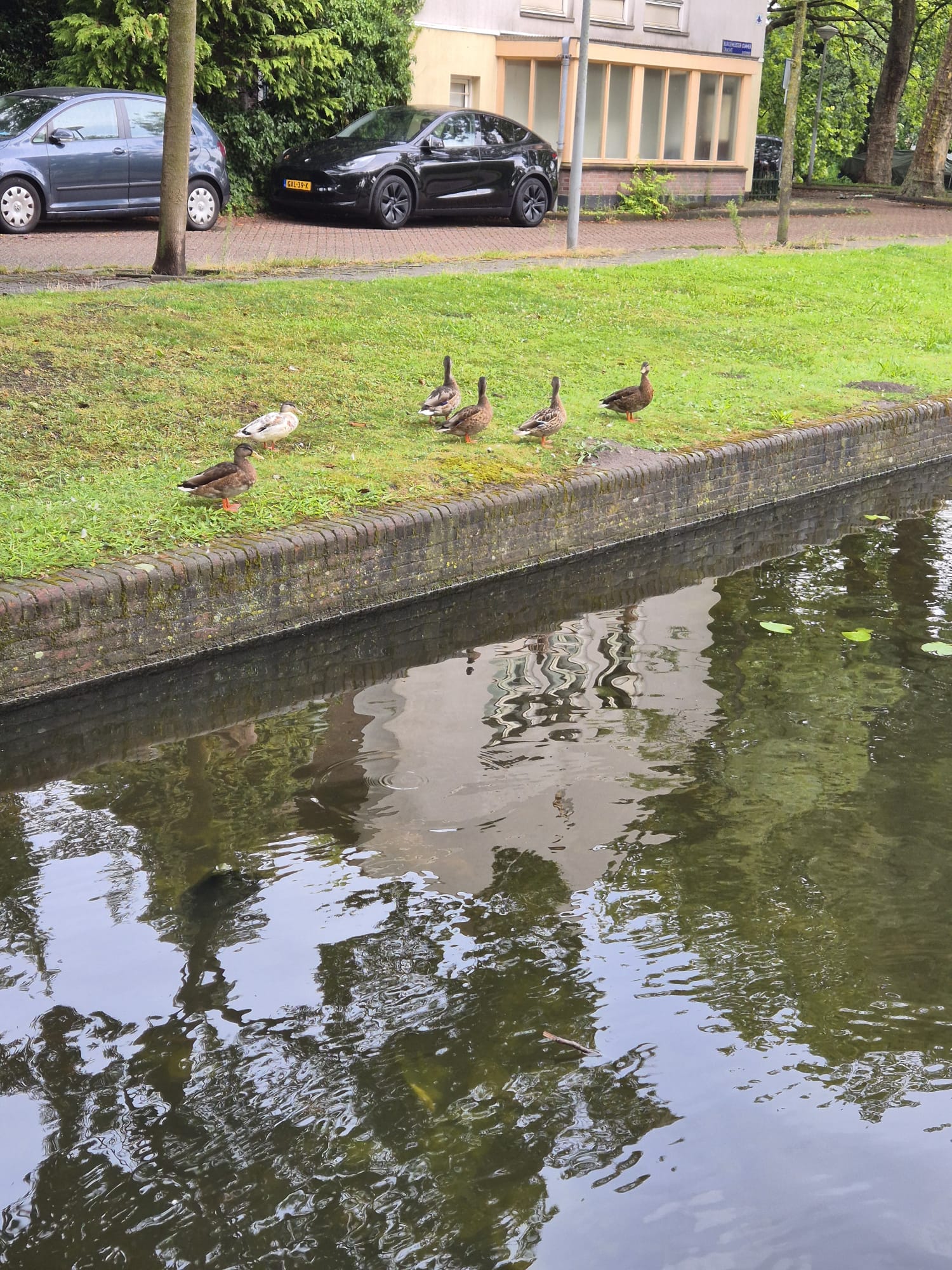 Bij aankomst eerst even de standaardrondje: luik dicht, één rood licht uit, en een blik op de sluis zelf. Hé… een meerkoetje! Maar wacht even – dit is het kleintje dat eigenlijk aan de hoge kant hoort. Ik weet niet of hij al kan vliegen, dus ik besluit de deur even open te zetten. Misschien zoekt hij z’n ouders op. Helaas, ondanks al m’n pogingen blijft hij waar hij is. Nou ja, deur dan maar weer dicht.