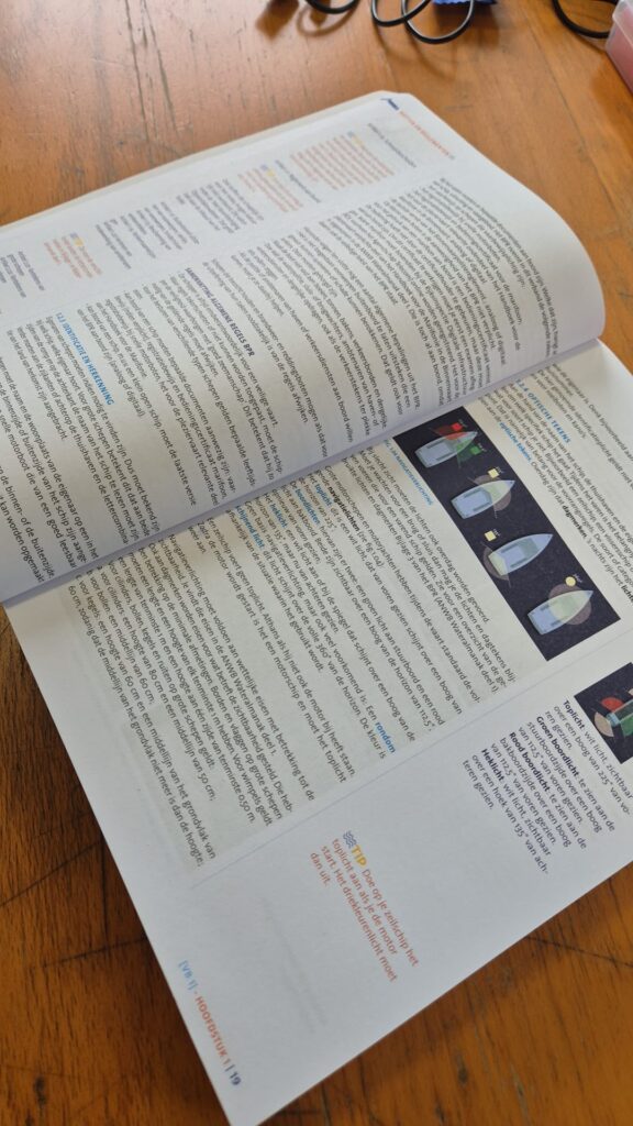 Daarna begin ik mijn ochtend met een kop koffie en het journaal. De zon komt langzaam tevoorschijn en ik pak mijn leerboek erbij. Ik wil namelijk mijn vaarbewijs halen, dus elke rustige ochtend op de sluis gebruik ik om te oefenen.